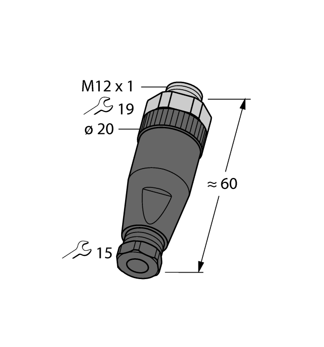 Stecker, M12x1, gerade, B-codiert