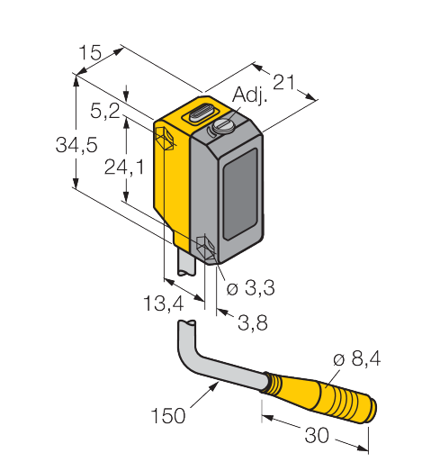 21,1 mm x 15 mm x 34,5 mm